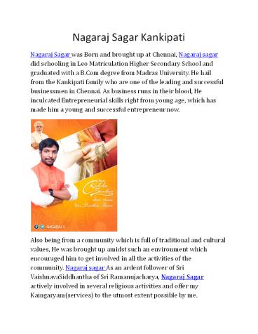 Nagaraj Sagar Kankipati | Nagaraj Sagar | Nagaraj Kankipati PowerPoint PPT Presentation