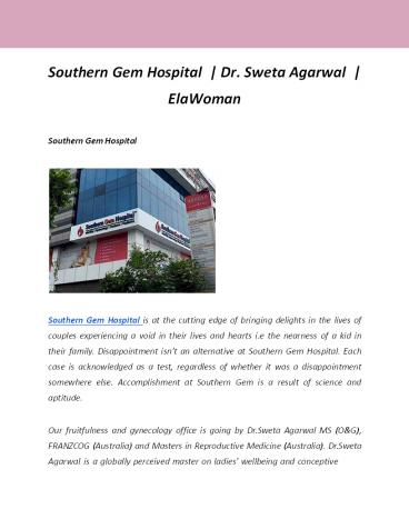 Title: Southern Gem Hospital | Dr. Sweta Agarwal | ElaWoman