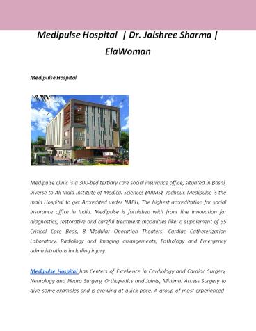 Title: Medipulse Hospital | Dr. Jaishree Sharma | ElaWoman