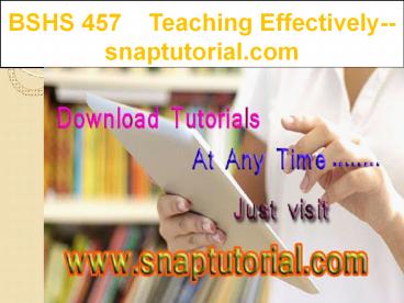 BSHS 457 Teaching Effectively--snaptutorial.com PowerPoint PPT Presentation