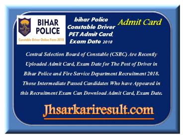 1bihar Police Constable Driver PET Admit Card,