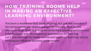 Training Rooms Make An Effective Learning Environment PowerPoint PPT Presentation