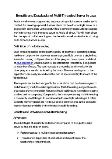 Benefits and Drawbacks of Multi-Threaded Server in Java PowerPoint PPT Presentation