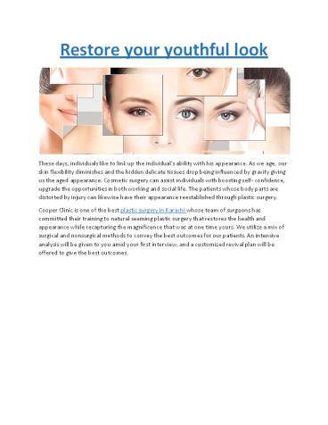 Best Cosmetic Plastic and Skin Surgery Karachi, Pakistan PowerPoint PPT Presentation