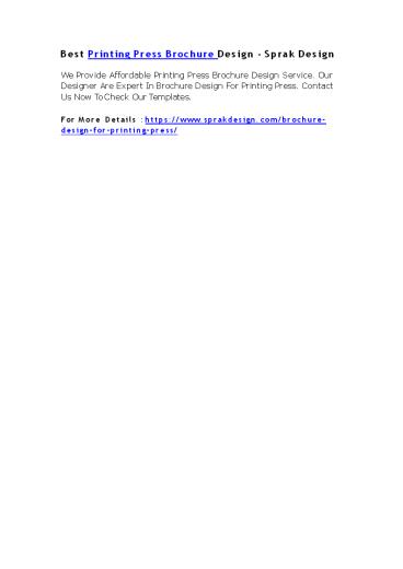 Best Printing Press Brochure Design - Sprak Design PowerPoint PPT Presentation