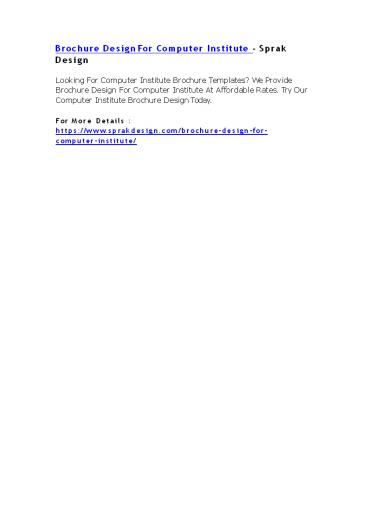 Brochure Design For Computer Institute - Sprak Design PowerPoint PPT Presentation