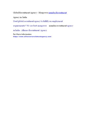 Global Recruitment Agency – Manpower mumbai Recruitment Agency in India PowerPoint PPT Presentation