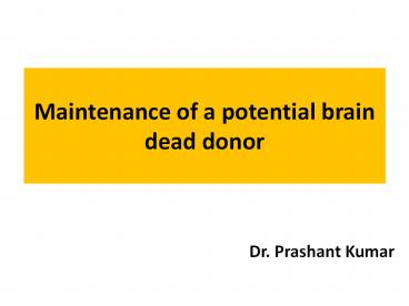 Title: Maintenance of a potential brain dead donor