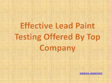 Effective Lead Paint Testing Offered By Top Company PowerPoint PPT Presentation