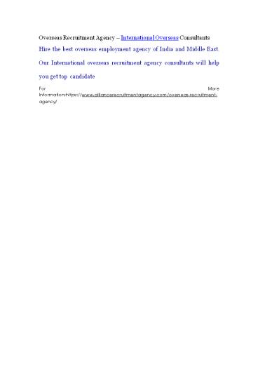 Overseas Recruitment Agency – International Overseas Consultants PowerPoint PPT Presentation