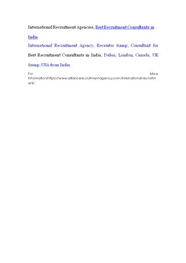 International Recruitment Agencies, Best Recruitment Consultants in India PowerPoint PPT Presentation