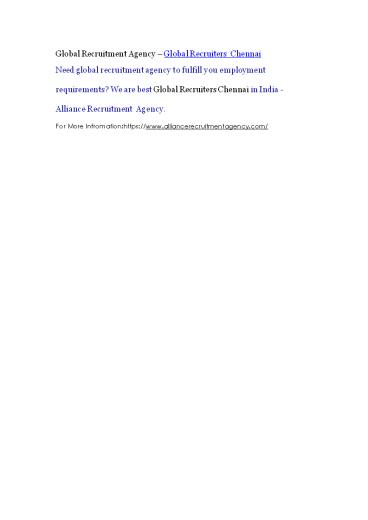 Global Recruitment Agency – Global Recruiters Chennai PowerPoint PPT Presentation