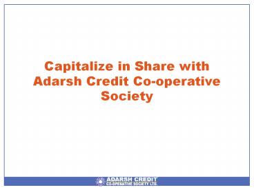 Capitalize in Share with Adarsh Credit Co-operative Society PowerPoint PPT Presentation