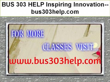 Title: BUS 303 HELP Inspiring Innovation--bus303help.com