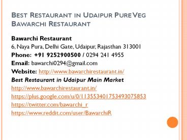 Title: Best Restaurant in Udaipur Pure Veg Bawarchi Restaurant