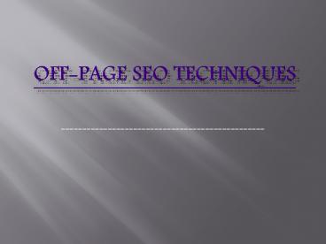 Off page seo techniques PowerPoint PPT Presentation