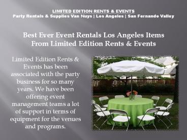- Limited Edition Rents Events has been