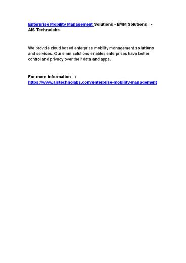 Enterprise Mobility Management Solutions - EMM Solutions  - AIS Technolabs - PowerPoint PPT Presentation