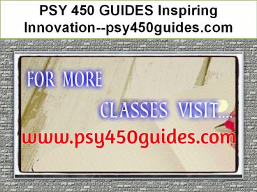 Title: PSY 450 GUIDES Inspiring Innovation--psy450guides.com