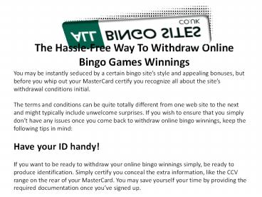 The Hassle-Free Way To Withdraw Online Bingo Games Winnings PowerPoint PPT Presentation