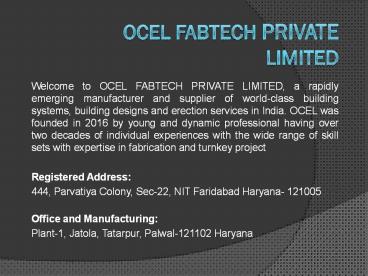 About OCEL Fabtech Pvt Ltd PowerPoint PPT Presentation