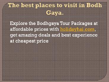 The best places to visit in Bodh Gaya. PowerPoint PPT Presentation