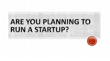 Are you planning to run a startup?