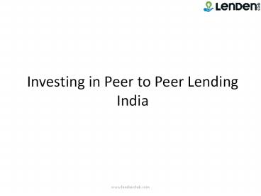 1Investing in Peer to Peer Lending India