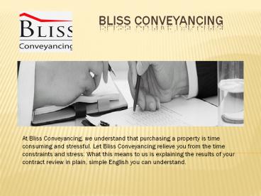 • At Bliss Conveyancing, conveyancing is all that