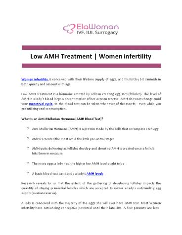 Title: Low AMH Treatment | Women infertility | Elawoman