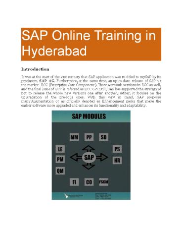 to a sound SAP training. - SAP history Without a proper knowledge of the