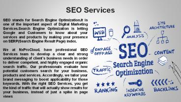 • We at NxProCloud, have professional SEO Services