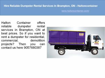 Dumpster Rental Brampton Haltoncontainer PowerPoint PPT Presentation