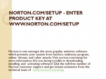 NORTON.COM/SETUP -DOWNLOAD NORTON ANTIVIRUS PowerPoint PPT Presentation