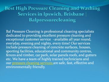 High Pressure Cleaning and Washing Ipswich, Brisbane PowerPoint PPT Presentation