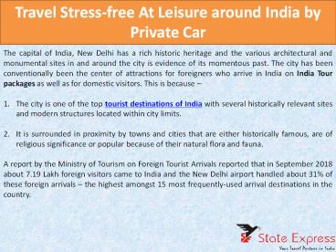 Title: Travel Stress-free At Leisure around India by Private Car