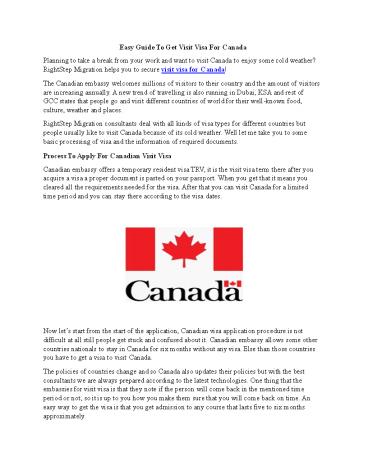 Easy Guide To Get Visit Visa For Canada PowerPoint PPT Presentation