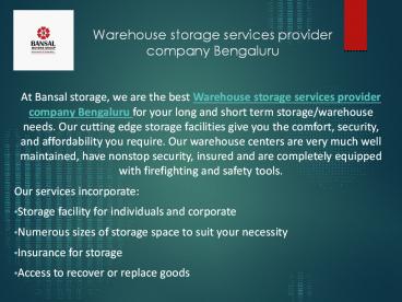 Warehouse storage services provider company Bengaluru PowerPoint PPT Presentation