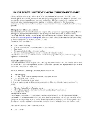 Title: IMPROVE BUSINESS PROSPECTS WITH SALESFORCE APPLICATION DEVELOPMENT