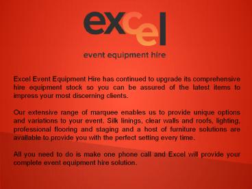 Excel Event Equipment Hire has a range of