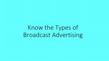 Know the Types of Broadcast Advertising