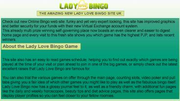 Title: THE AMAZING NEW LADY LOVE BINGO SITE UK