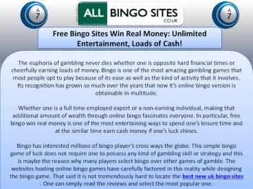 Title: Free Bingo Sites Win Real Money: Unlimited Entertainment, Loads of Cash!