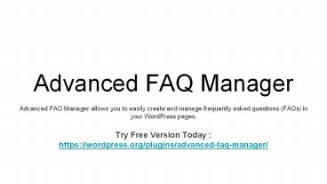 Advance FAQ Manager - FAQ Plugin PowerPoint PPT Presentation