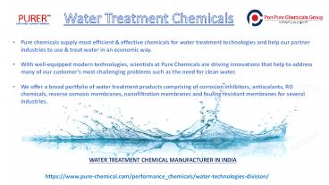 Title: Water treatment chemical manufacturer in India