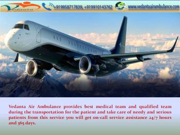 Safe and Friendly Vedanta Air Ambulance Service from Ranchi PowerPoint PPT Presentation