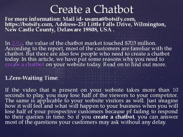 create a chatbot PowerPoint PPT Presentation