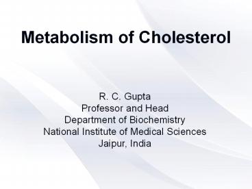 METABOLISM OF CHOLESTEROL PowerPoint PPT Presentation