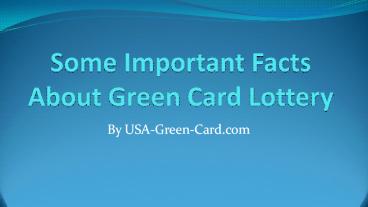 Some Important Facts About Green Card Lottery PowerPoint PPT Presentation