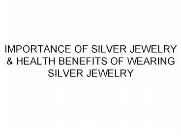 IMPORTANCE OF SILVER JEWELRY HEALTH BENEFITS OF